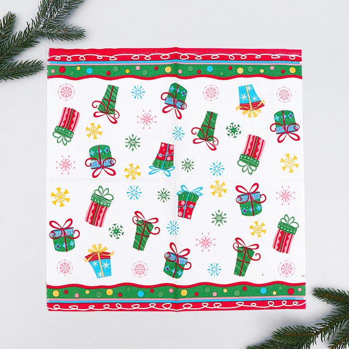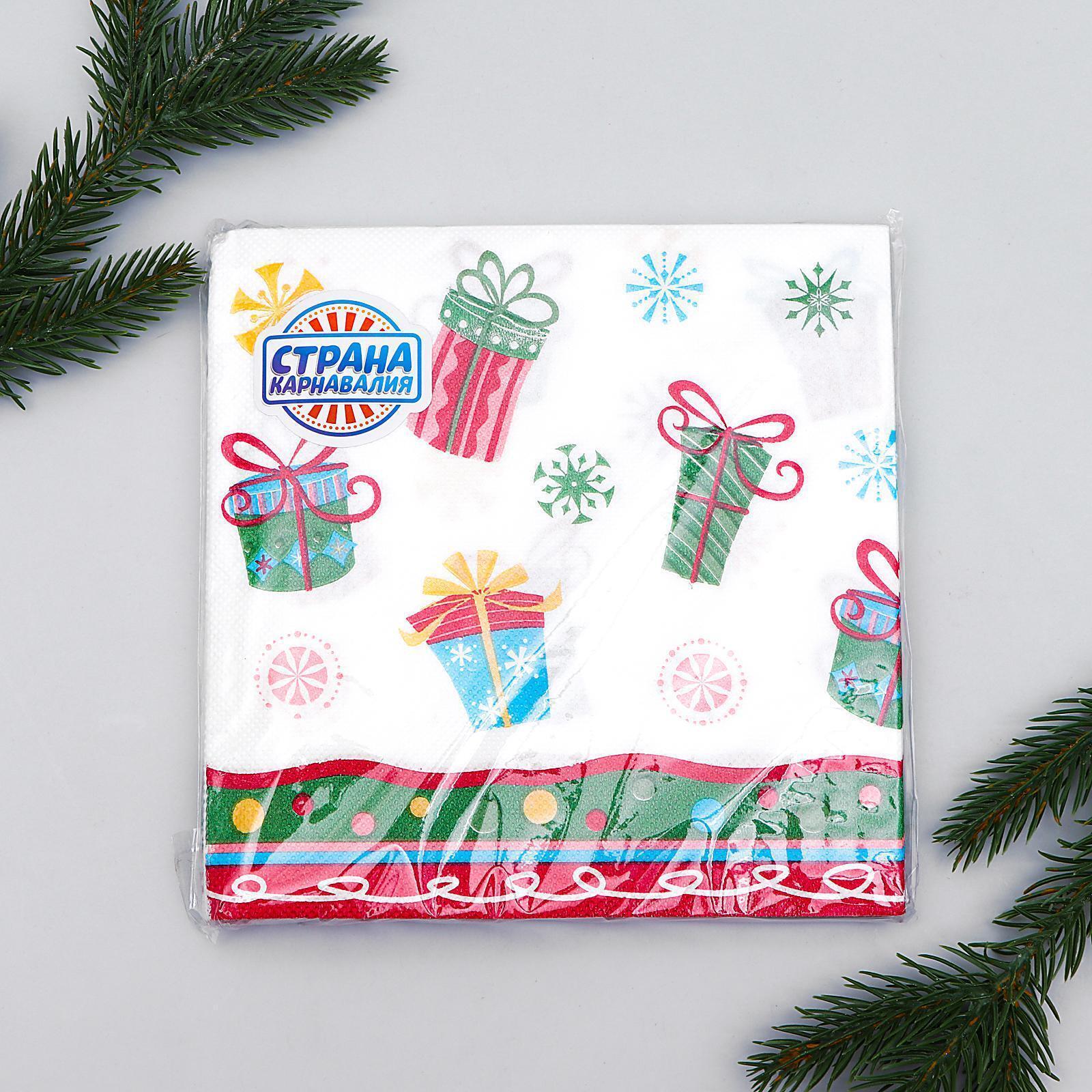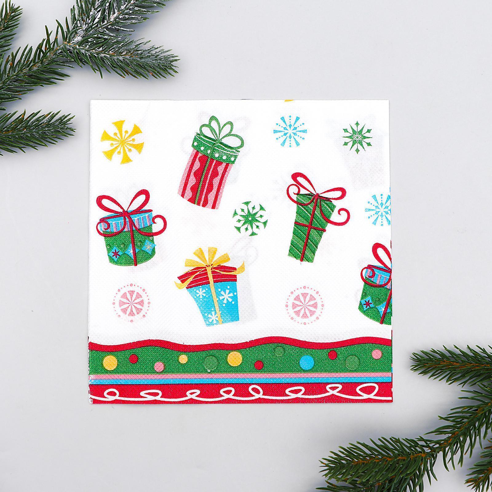 Салфетки бумажные "Подарки" 33х33 см, набор 20 шт 5094401