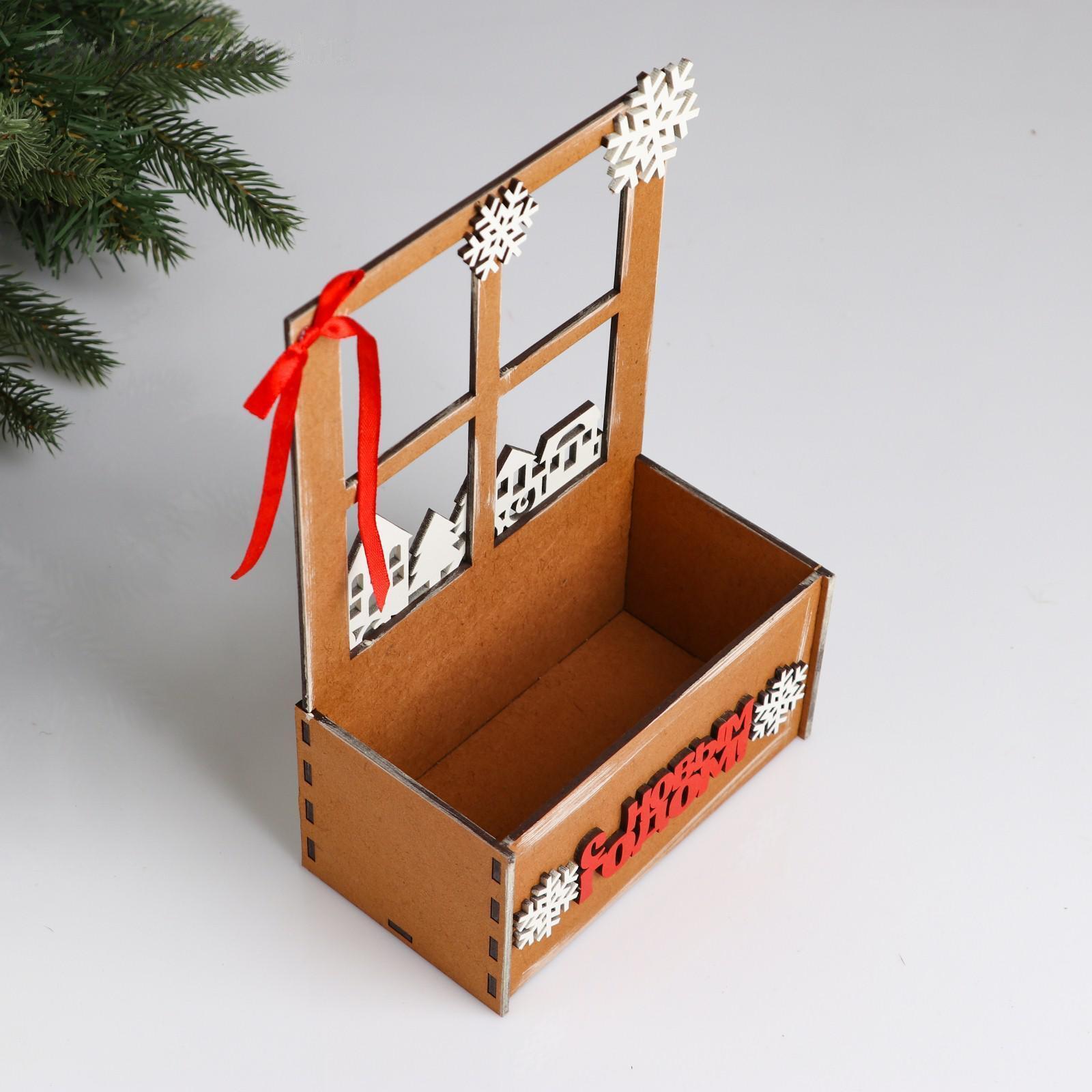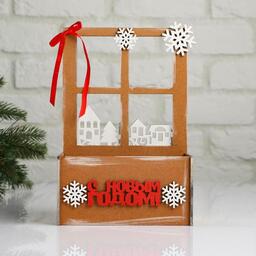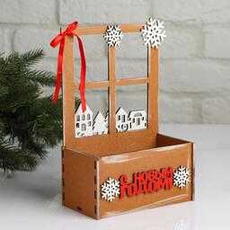 Кашпо деревянное, 15.5×9×23.5 см "Новогоднее. Взгляд в окошко", подарочная упаковка 5400572