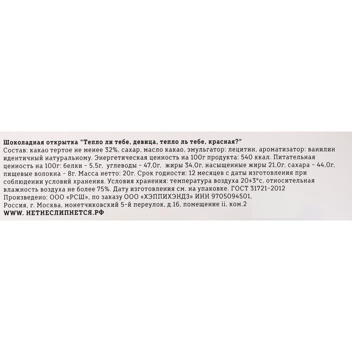 Шоколадная открытка "Тепло ли тебе, девица, тепло ль тебе, красная?" 20 г 5298019