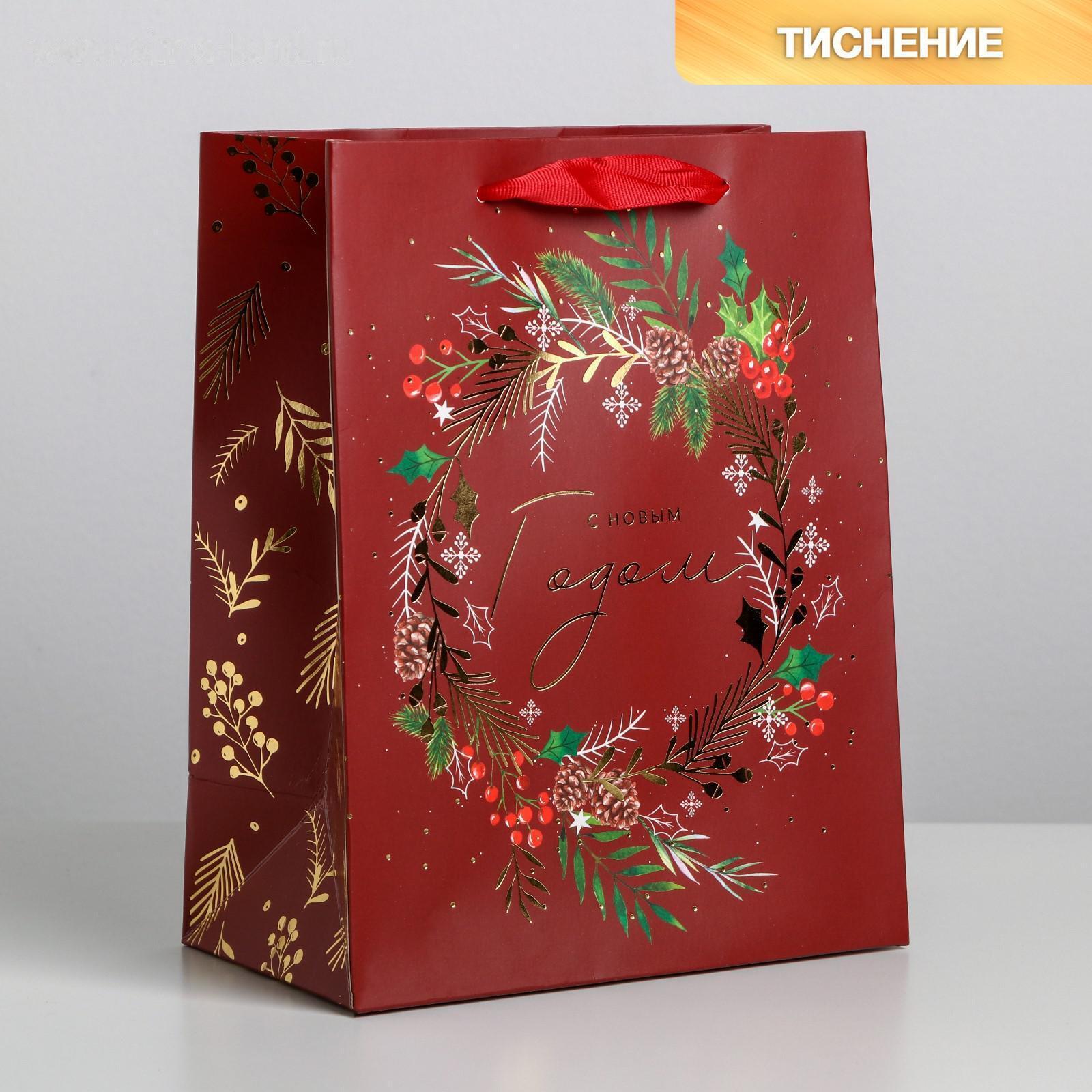 Пакет ламинированный вертикальный «Новогодний веночек», MS 18 × 23 × 10 см 4843325
