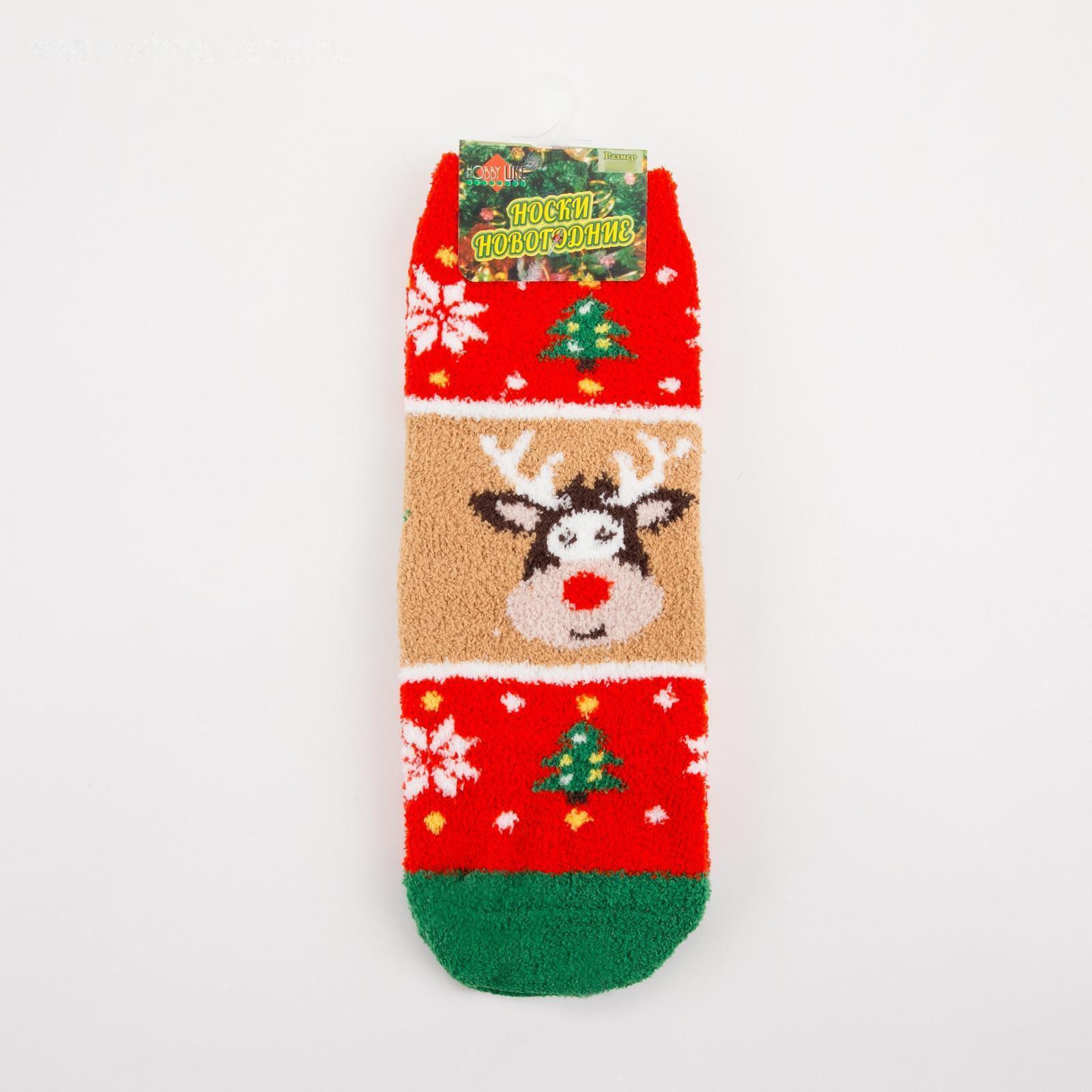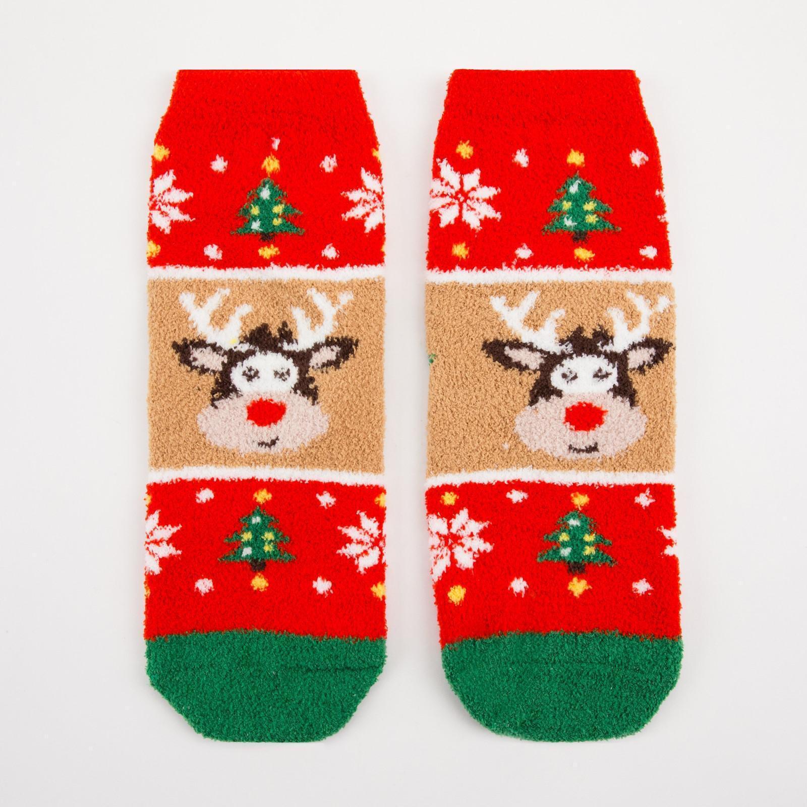 Носки женские махра-пенка Нжмп2258-18 Олень цвет красный, р-р 23-25 (р-р обуви 36-40) 5296842