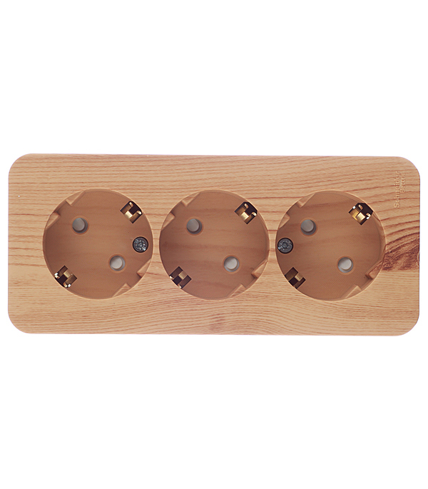 Розетка тройная с заземлением со шторками о/у Schneider Electric Blanca ясень