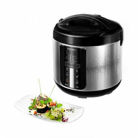 • Комплектация Книга рецептов, Мерный стакан, Контейнер-пароварка, Плоская ложка, Черпак, Чаша с керамическим покрытием, Мультиварка