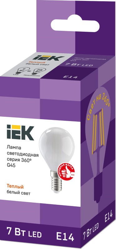 Лампочки IEK LLF G45 7W 3000K E14
