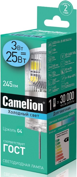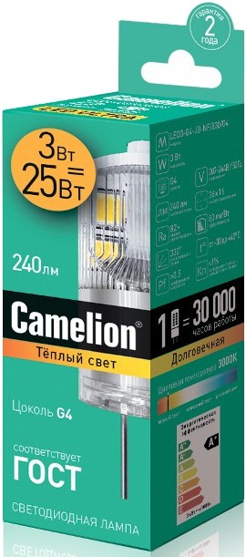 Лампочки Лампочка Camelion LED3-G4-JD-NF 3W 4500K G4