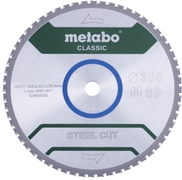 Metabo Steel cut Classic HW/CT 355х3.0/2.5x25.4, Z72 FZFA/FZFA 4 град. (628669000) - это пильный диск, который относится к профессиональному классу оборудования. Он характеризуется диаметром 355 мм и посадочным местом 25.4 мм. Устанавливается на монтажные пилы, прекрасно справляется с резкой стали.