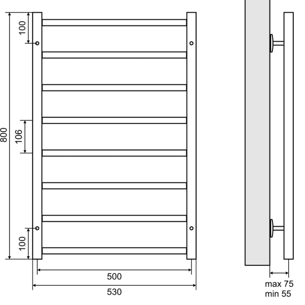 Полотенцесушитель водяной ТМ "Вармо"Оберон П8 50-80 1/2" из нержавеющей стали