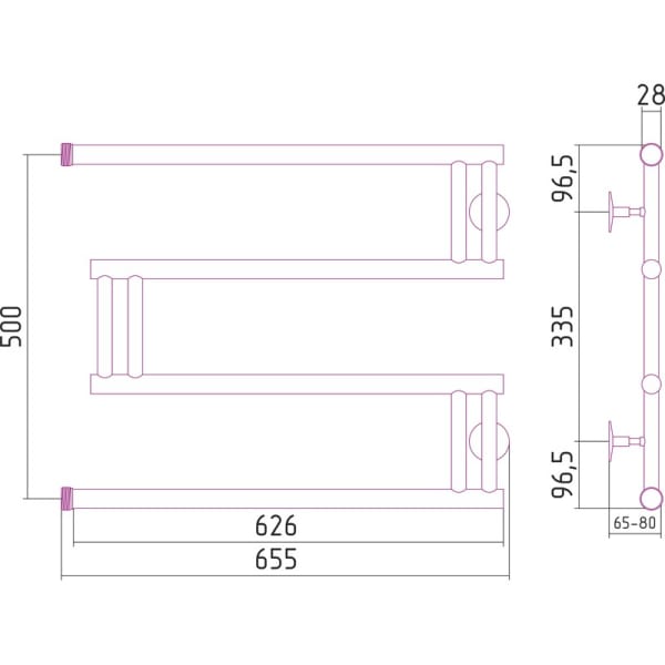 Полотенцесушитель водяной без полки Элита Equation М 50-65, нержавеющая сталь