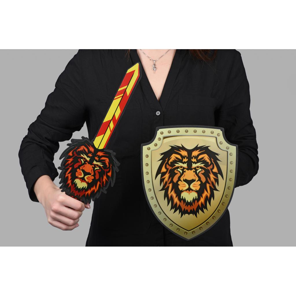 У наборі два вражаючі елементи для захопливих ігор у піратів. Набір складається з меча і щита. Вони виготовлені зі спіненого поліпропілену. Матеріал безпечний, м’який, але достатньо цупкий і тримає форму. Іграшкова зброя має вражаючий вигляд: на щиті і мечі зображений лев. Меч завдовжки 39 см., щит розміром 24х10 см. Набір іграшкової зброї для дітей від 3 років.