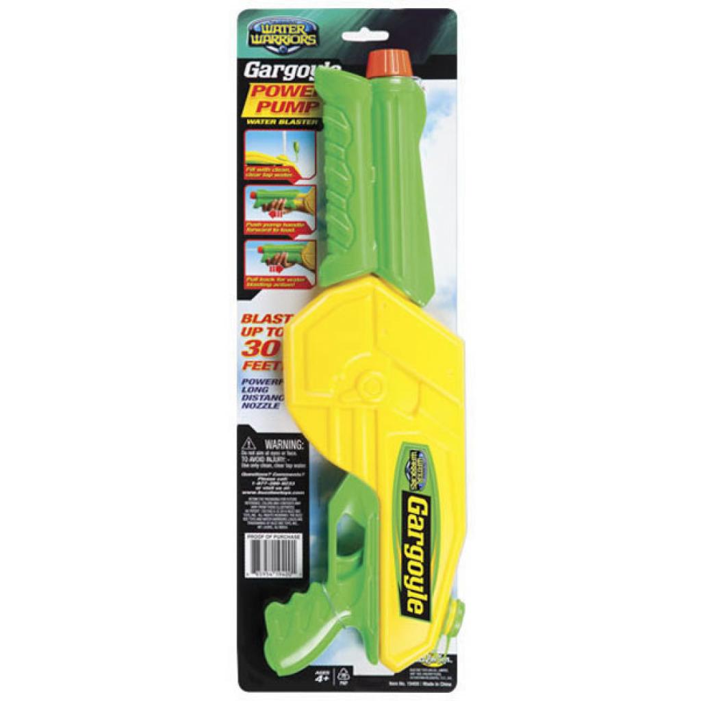 Який же спекотний літній день обійдеться без обливань? А зробити цей процес ще більш цікавим і веселим можна за допомогою водяної зброї BuzzBeeToys Горгулья, зелений з жовтим (19400-1), завдяки якому кожен маленький боєць відчує себе учасником великої битви. Це яскрава пластикова дитяча зброя. Дальність стрільби пістолета 9 метрів. Об'єм резервуара для води 0,5 літра. Легкий у використанні.