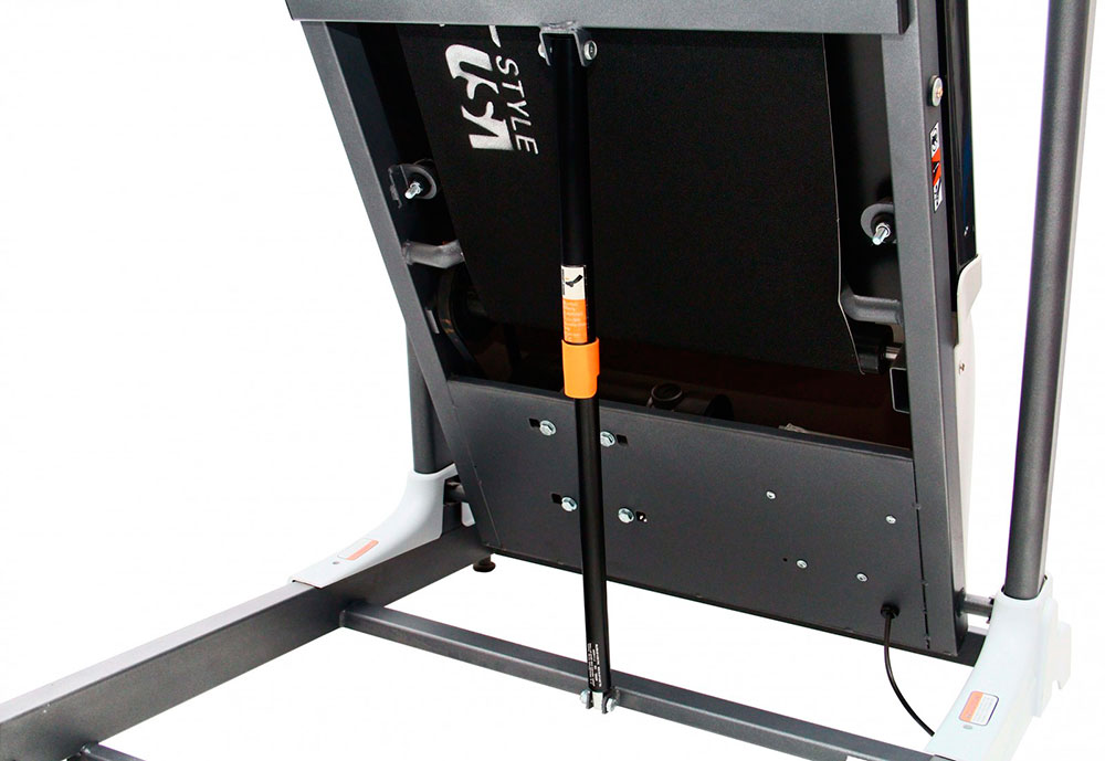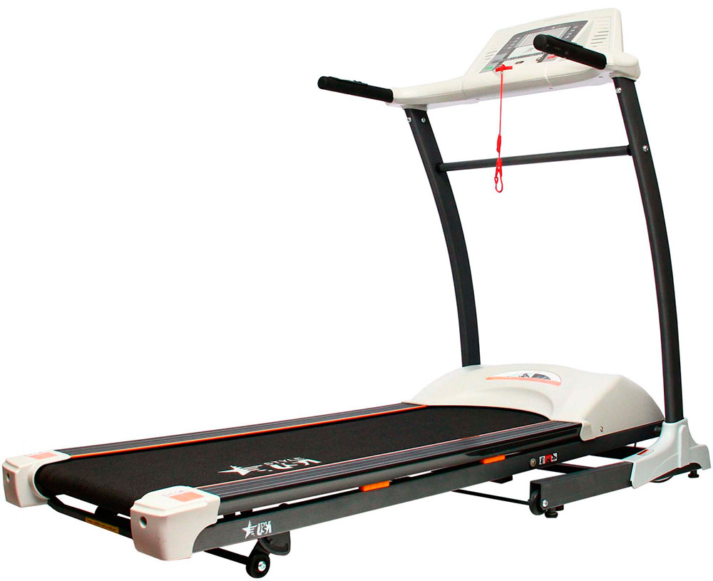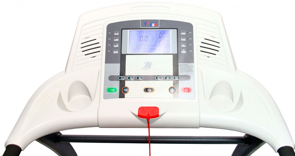 Электрическая беговая дорожка. Мощность двигателя: 2-3.5 л.с. Размеры бегового полотна: 120x40 см. Максимальная скорость движения полотна: 14 км/ч. 18 встроенных программ. Регулировка угла наклона полотна. Кардиодатчики на поручнях. ЖК-дисплей с подсветкой. Отображаемая информация: скорость, пройденная дистанция, время тренировки, расход калорий, пульс.