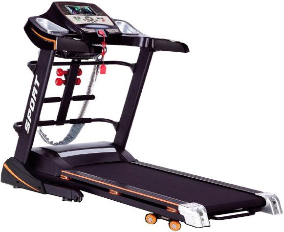 Электрическая беговая дорожка. Мощность двигателя: 1.5 л.с. Размеры бегового полотна: 115x42 см. Скорость движения полотна: 1-15.8 км/ч. Ручная регулировка угла наклона (3 уровня). Кардиодатчики на поручнях. Отображаемая информация: скорость, пройденная дистанция, время тренировки, расход калорий, пульс.
