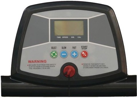 Электрическая беговая дорожка. Размеры бегового полотна: 105х32 см. Дисплей. Отображаемая информация: время, расстояние, скорость, калории, выбранная программа. Максимальный вес пользователя 100 кг. Транспортировочные ролики/колеса.