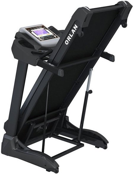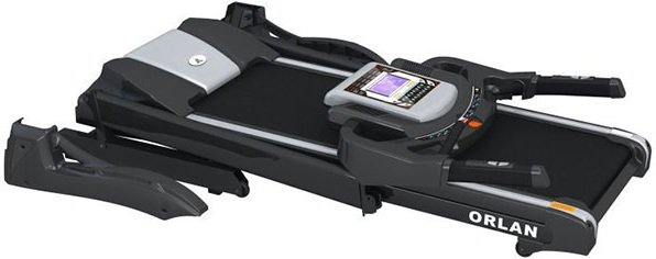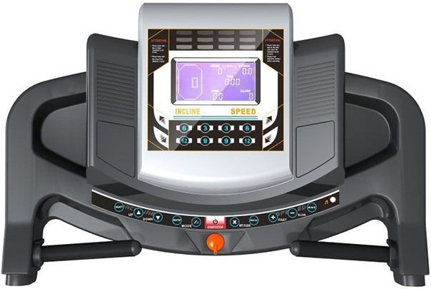 Электрическая беговая дорожка. Размеры бегового полотна: 142х50.5 см. Дисплей. Отображаемая информация: скорость, время, дистанция, калории, пульс, жироанализатор, угол наклона, функции. Максимальный вес пользователя 150 кг. Транспортировочные ролики/колеса, 2 кармана для размещения бутылки с водой и различных предметов, кнопки регулировки угла наклона на поручнях.