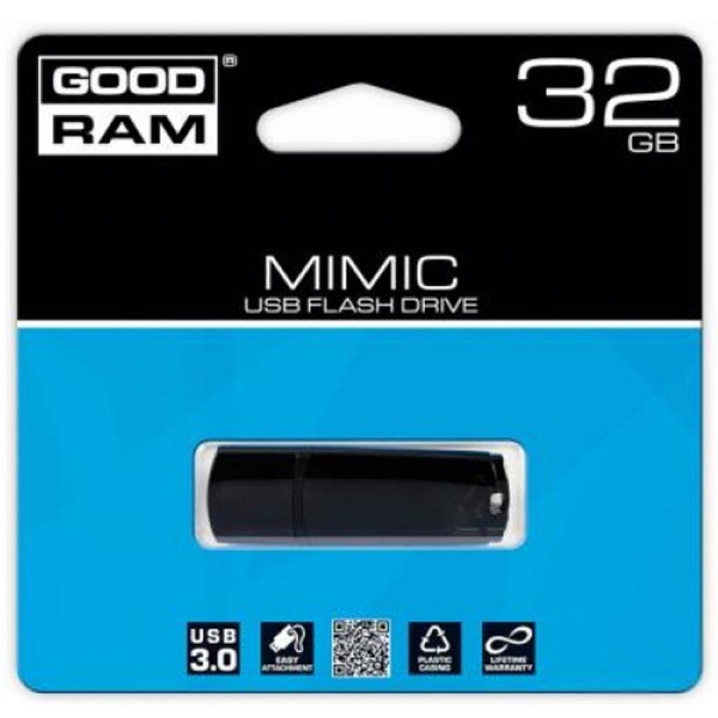 Особливості USB флеш накопичувач GOODRAM 32GB Mimic Black USB 3.0: обсяг пам'яті: 32 ГБ; інтерфейс: USB 3.0; конструкція: з ковпачком; матеріал корпусу: пластик;