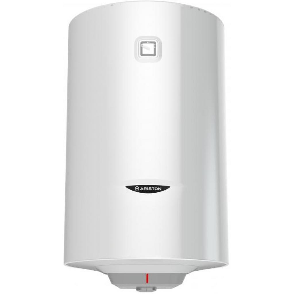 Обзор Ariston PRO1 R 100 V5 Настенная вертикальная модель Водонагреватель накопительный Ariston PRO1 R 100 V/5 сделан в классическом варианте с цилиндроподобным корпусом, который размещается на стене. Он великолепно приспособлен для современных ванных комнат и при помощи такого монтажа позволит сэкономить ее пространство, освободив его в нижней части комнаты. Белый цвет и непретенциозный внешний вид позволит идеально вписаться в любую комнату. Индикатор отслеживания температуры На корпусе бойлера вы увидите механический индикатор температуры. Он позволит вам внимательно следить за температурой воды и, при необходимости, регулировать ее до той, которая требуется. Для этого у техники предусмотрены механические средства регулирования, имеющие простой интерфейс для доступного взаимодействия. Открытый ТЭН Представленная конфигурация наделена открытым ТЭНом, имеющим прямое соприкосновение с водой. Он позволит существенно уменьшить время, затраченное на нагревание воды, находящейся в баке, т.к. тепло передается ей без каких-либо преград. Нагревательный элемент сделан из меди. Технология NANOMIX Представленная технология базируется на недопущении смешивания холодной и горячей воды, что в итоге позволяет гораздо быстрее получить полный бак горячей воды и не потерять ее температуру длительное время. Магниевый анод В конструкции имеется такая деталь, как магниевый анод. Он защищает водонагреватель от разрушения за счет отложений кальцинированных отходов и солей в воде, которые негативно влияют на водный резервуар. Титановая эмаль Внутреннее покрытие бака сделано из титановой эмали. Это очень прочный материал, который позволит накопительному нагревательному устройству не испортиться от воды низкого качества.