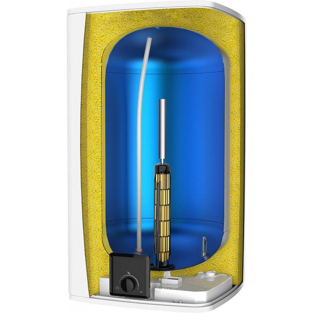 Водонагрівач має форму призми і може бути встановлений в будь-якому інтер'єрі. Такий бойлер можна купити для сім'ї з 3 осіб. Спосіб установки - вертикальний. Змінилася висота приладу з 790 мм до 712 мм, це дозволяє встановити його навіть в невеликому шафі.