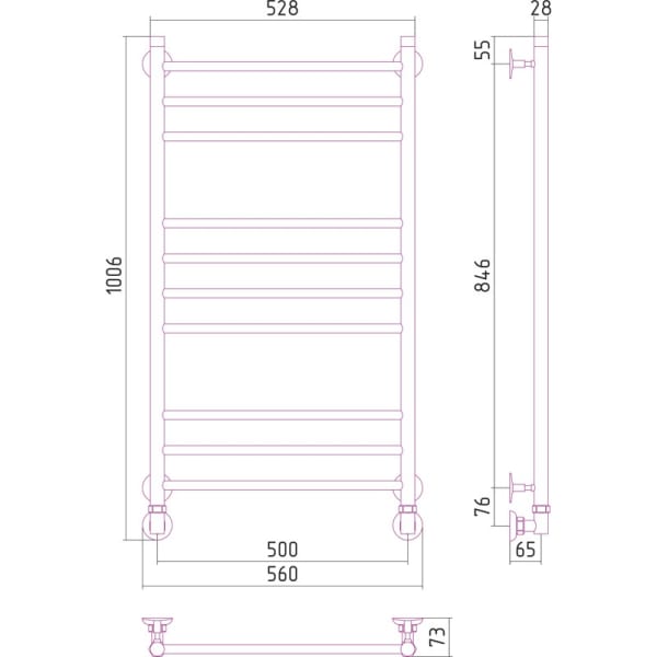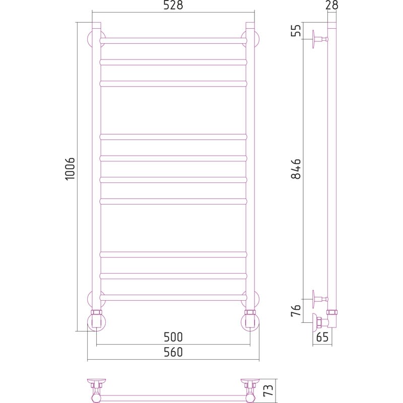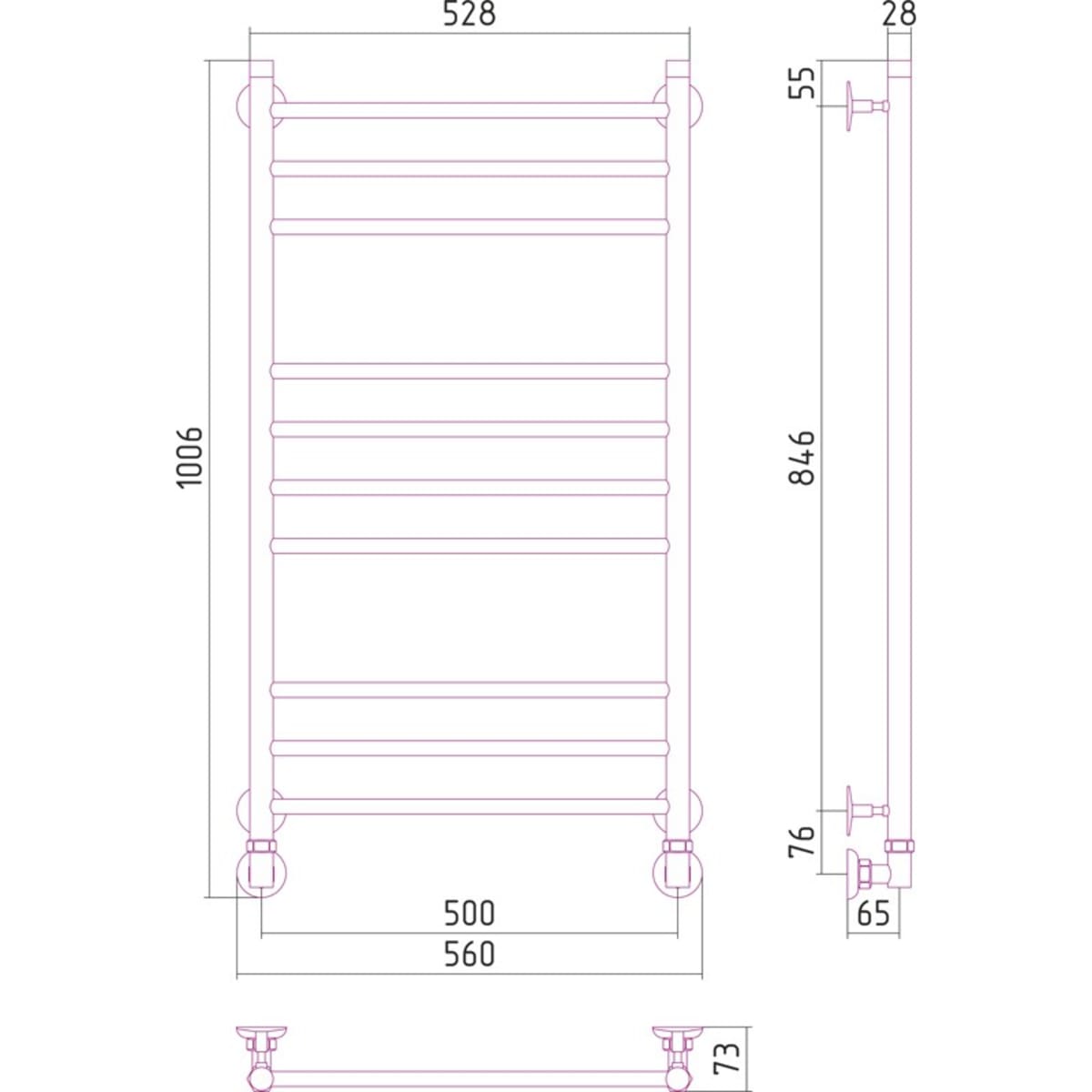 Полотенцесушитель водяной без полки ВПС-18, нержавеющая сталь, 50x100 см