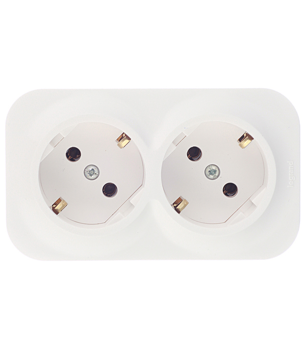 Розетка Legrand Quteo 782213 двойная открытая установка белая с заземлением