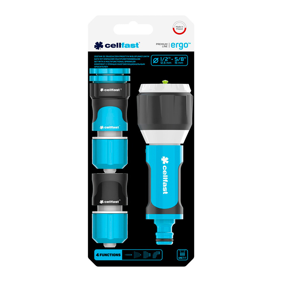 Прямой многофункциональный ороситель ERGO™: - высококачественный, эргономичный ороситель с возможностью регулировки силы потока и типа орошения - тщательное описание облегчает выбор соответствующего вида струи от обильного потока до деликатного распыления или орошения типа душ от сильного до деликатного - система SAFETOUCH™ обеспечивает надежную хватку и удобное использование, а также защищает от случайных повреждений Набор содержит: - Прямой многофункциональный ороситель ERGO™ - Коннектор - диаметр ERGO™ 1/2" - 5/8" - Коннектор - стоп ERGO™ 1/2" - 5/8" - Универсальный адаптер с внутренней нарезкой ERGO™ G1/2" - G3/4" - G1"