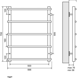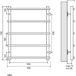 Полотенцесушитель водяной 50х70 см, с боковым подключением 50 см, нержавеющая сталь