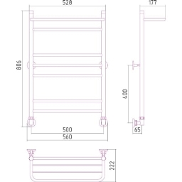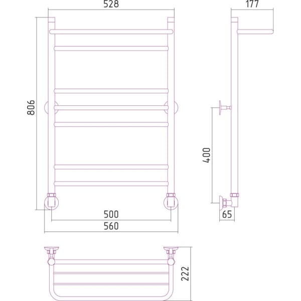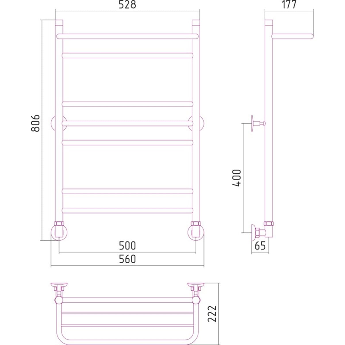 Полотенцесушитель водяной с полкой ВПС-38, нержавеющая сталь, 50x80 см
