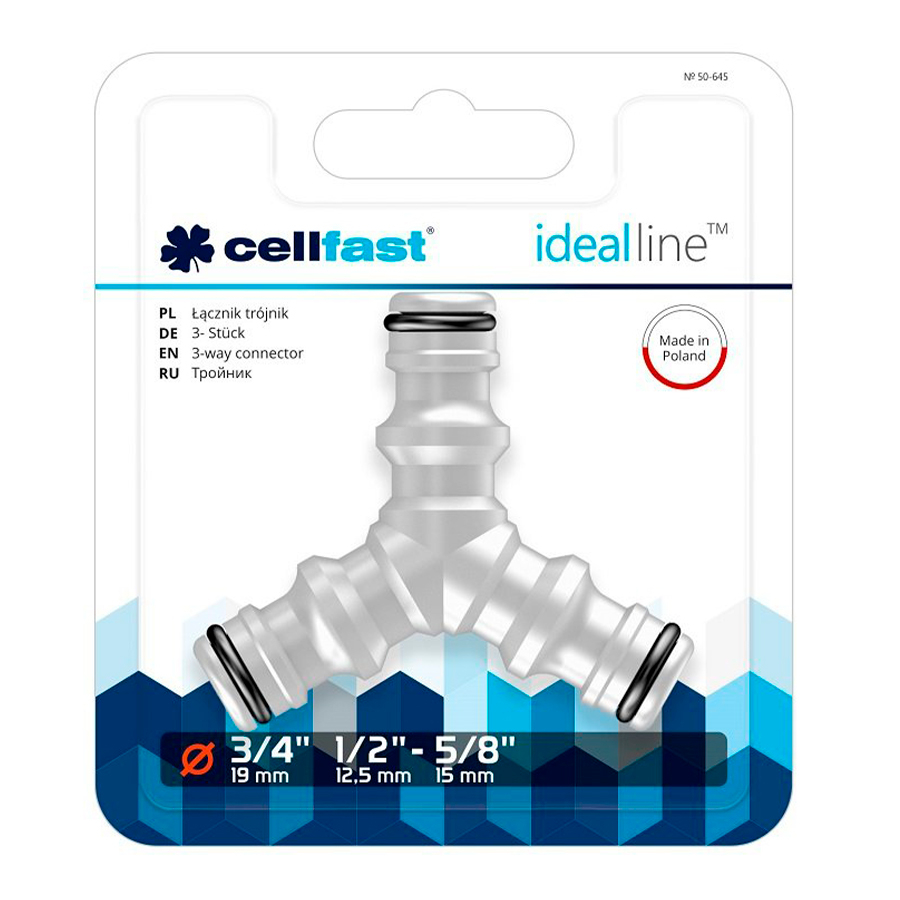 Соединитель тройник марки Cellfast предназначен для разветвления поливочного шланга. Обеспечивает последовательное соединение двух шлангов с быстросоединяемыми муфтами, и благодаря этому расширить систему орошения сада. Изготовлен из прочного пластика ABS и нержавеющей стали.