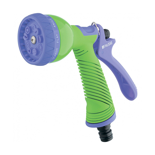 Эргономичный пистолет-разбрызгиватель с курком в современном исполнении из надежных пластиковых элементов. Конструкция обеспечивает прочность и простоту в эксплуатации. Удобно держать в руке. Предусмотрено 9 режимов подачи воды с плавной регулировкой напора: от сильной струи до мелкодисперсного распыления, в зависимости от поставленной задачи, также предусмотрена полная остановка подачи воды. Управление легко осуществляется с помощью одной руки.