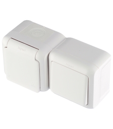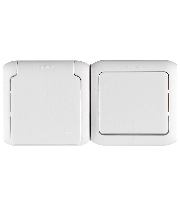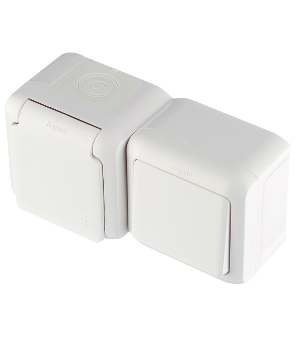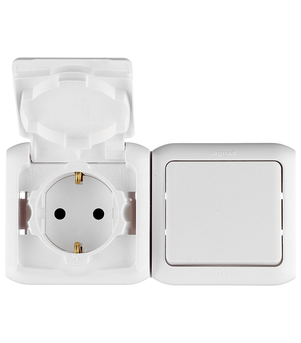 Блок выключатель с розеткой Legrand Quteo 782318 одноклавишный открытая установка белый с зазем