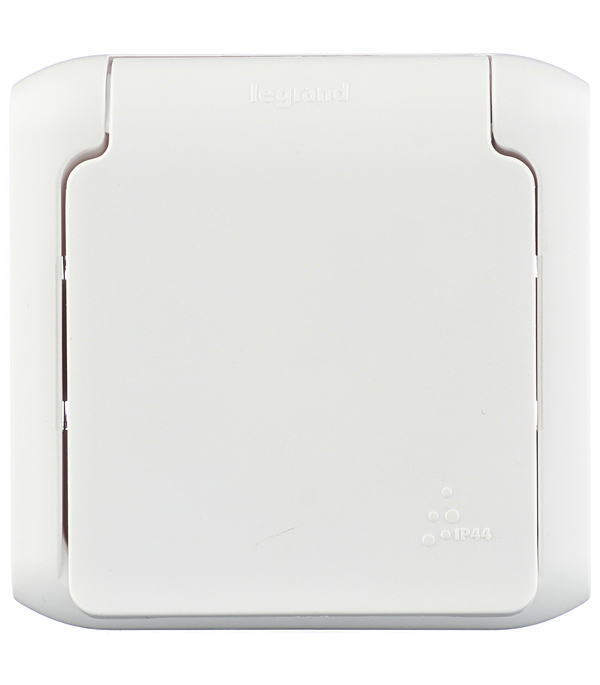 Розетка Legrand Quteo 782321 открытая установка белая с заземлением IP44 с крышкой влагозащищен