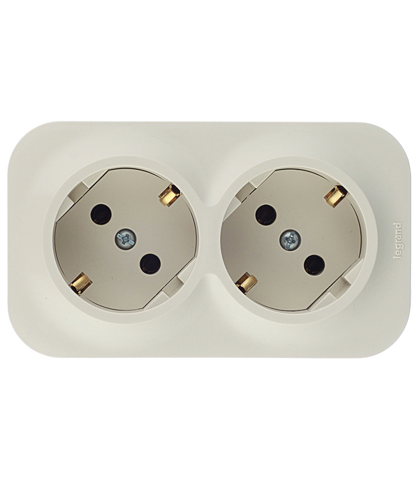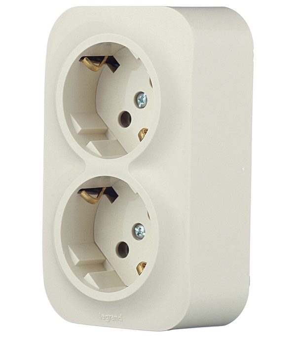 Розетка Legrand Quteo 782243 двойная открытая установка слоновая кость с заземлением