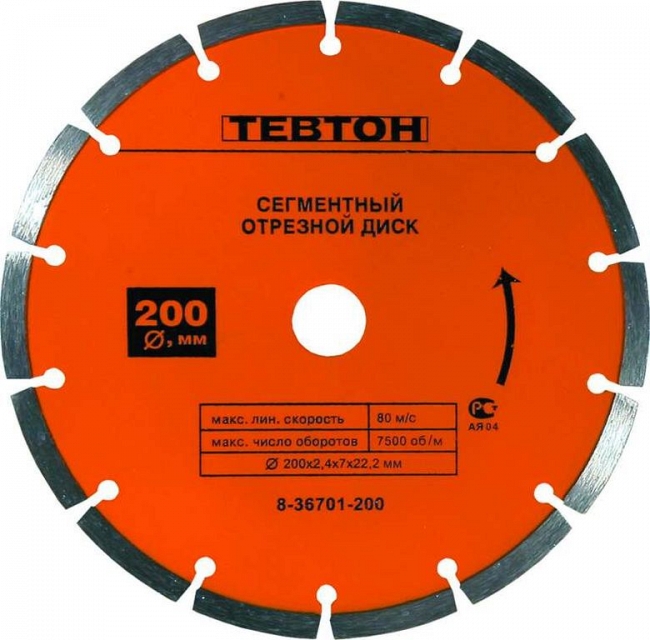 Сегментный диск применяется для сухой резки бетона, гранита, кирпича, камня и других строительных материалов