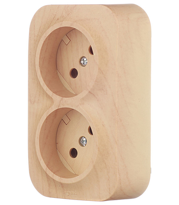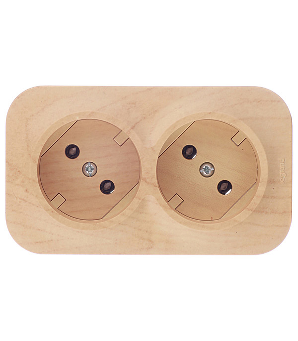Розетка Legrand Quteo 782272 двойная открытая установка дерево без заземления