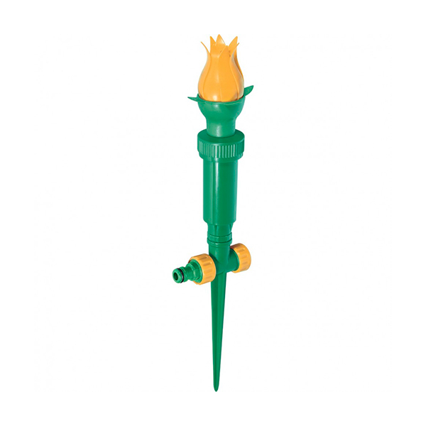 Разбрызгиватель «Тюльпан» со штуцерной посадкой и пикой для закрепления в почве. В процессе работы имитирует движение распускающегося цветка. При подаче напора головка цветка приподнимается, раскрывается и, за счет находящейся внутри вращающейся крыльчатки, создавая эффект дождя, обеспечивает равномерный круговой полив площади до 75 кв. м. Разбрызгиватель предназначен для стационарного полива на дачных участках, в садах, парках и скверах. Совместим со всеми элементами системы полива PALISAD и PALISAD Luxe. Изготовлен из прочного АБС-пластика.