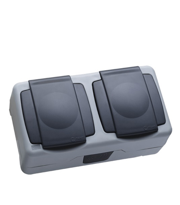 Розетка двойная Makel о/у с заземлением с крышкой влагозащищенная IP55 серая