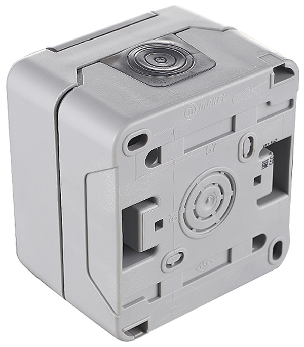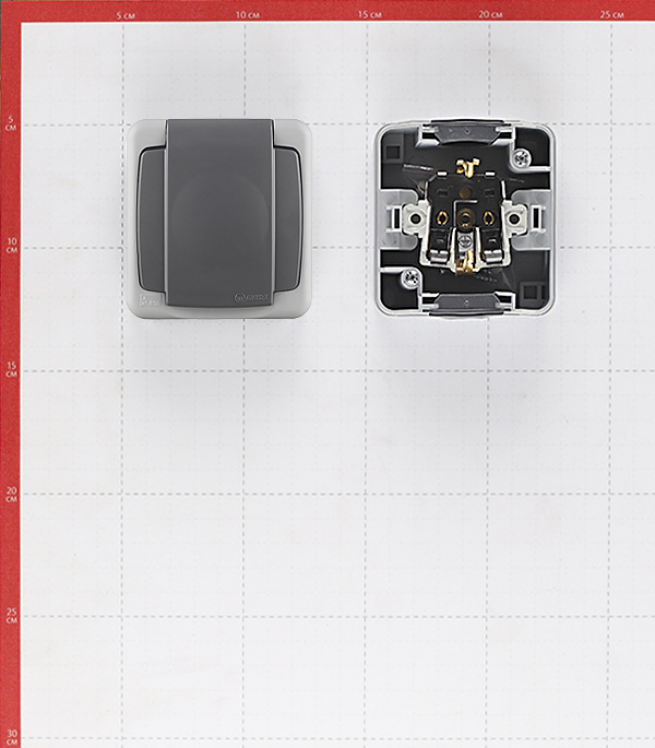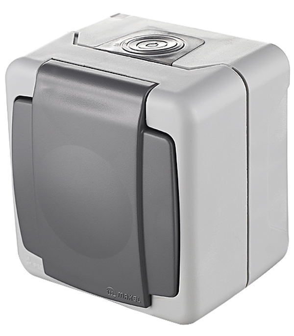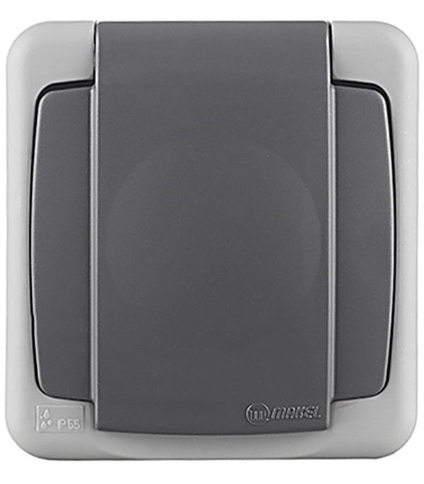 Розетка Makel о/у с заземлением с крышкой влагозащищенная с зажимом IP55 серая