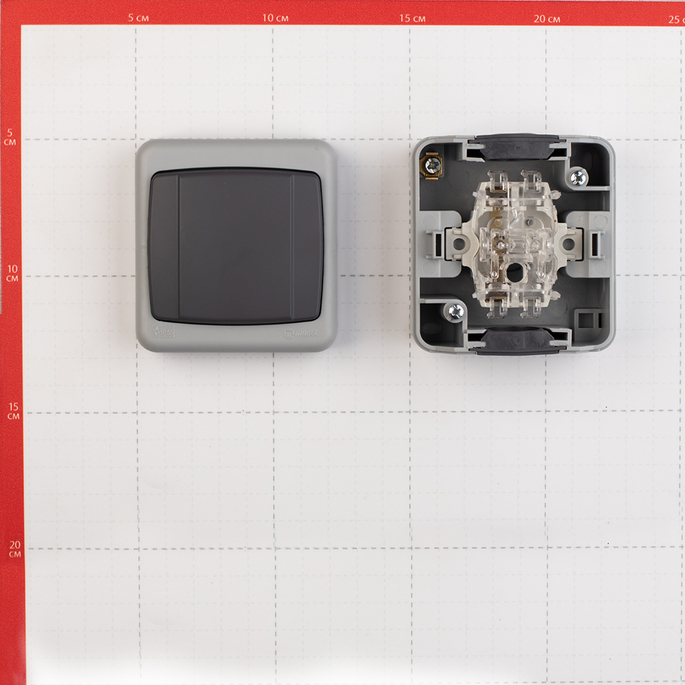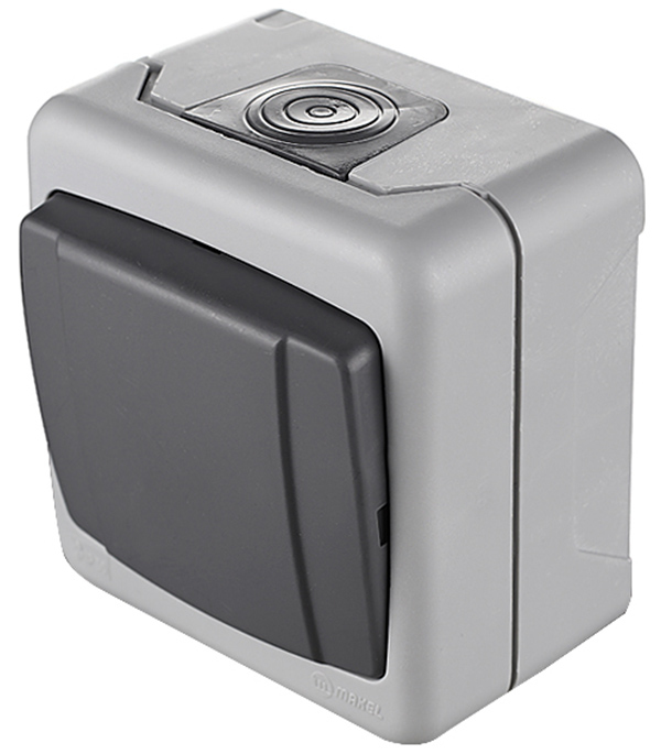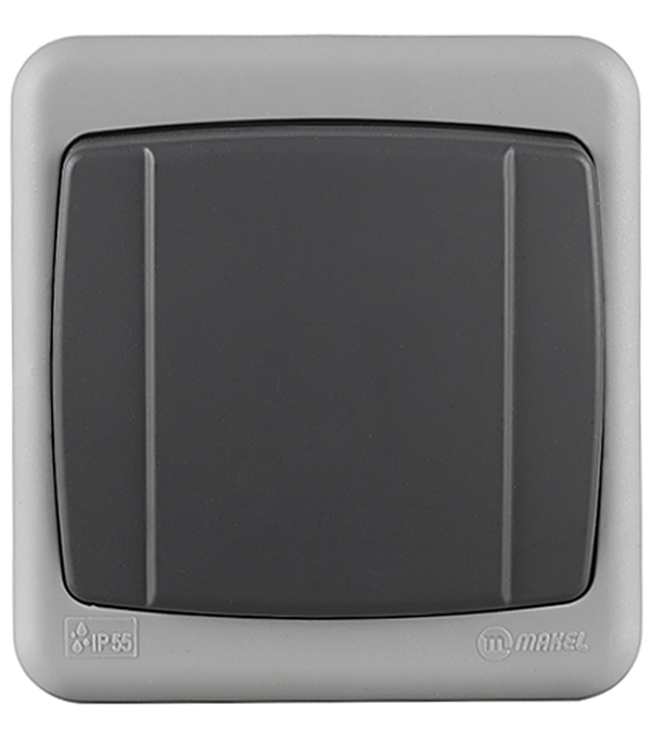 Выключатель одноклавишный Makel о/у влагозащищенный с зажимом IP55 серый