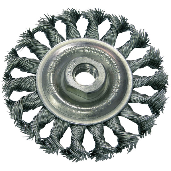 Щетка радиальная проволочная PROLINE 32532 используется для удаления краски, оболочки, окалины и острых краев, для зачистки поверхностей и придания шероховатости. Подходит для тяжёлых и очень тяжёлых работ. Представляет собой диск из витой стальной проволоки. Диаметр щетки составляет 125 мм. Крепление типа М14.