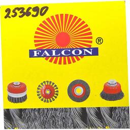 Щетка радиальная FALCON 50664302 используется для очистки дерева, металла и ПВХ, а также для сглаживания, удаления ржавчины, трещин и кромок. Применяется на угловых шлифмашинах. Рабочая часть сделана из пучков стальной проволоки. Диаметр — 100 мм.