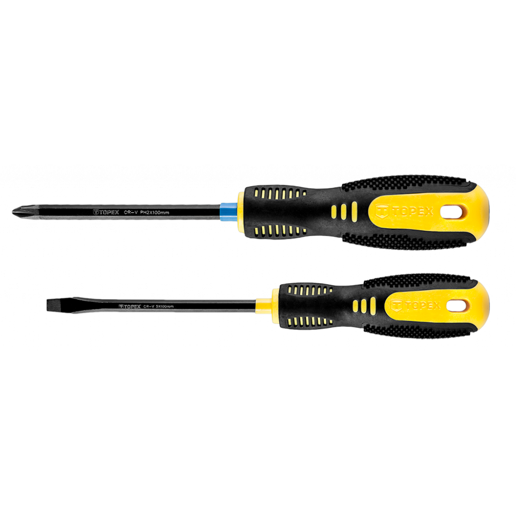 Набір інструментів викруток Topex 39D932, 2 шт. (39D932) призначений для виконання механічних робіт, а також робіт, що виконуються майстрами-аматорами.