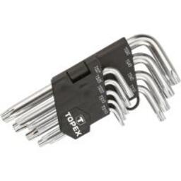 Набір інструментів Topex, ключі Torx (зірочки), TS10-50, набір 9 шт.*1 уп. (35D950), ключі п'ятигранні короткі.