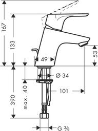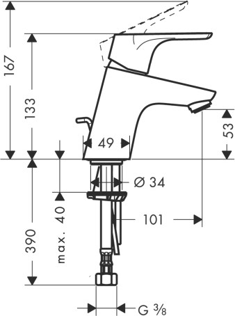 • Длина шлангов для подключения 390 мм (с гайками G3/8")
