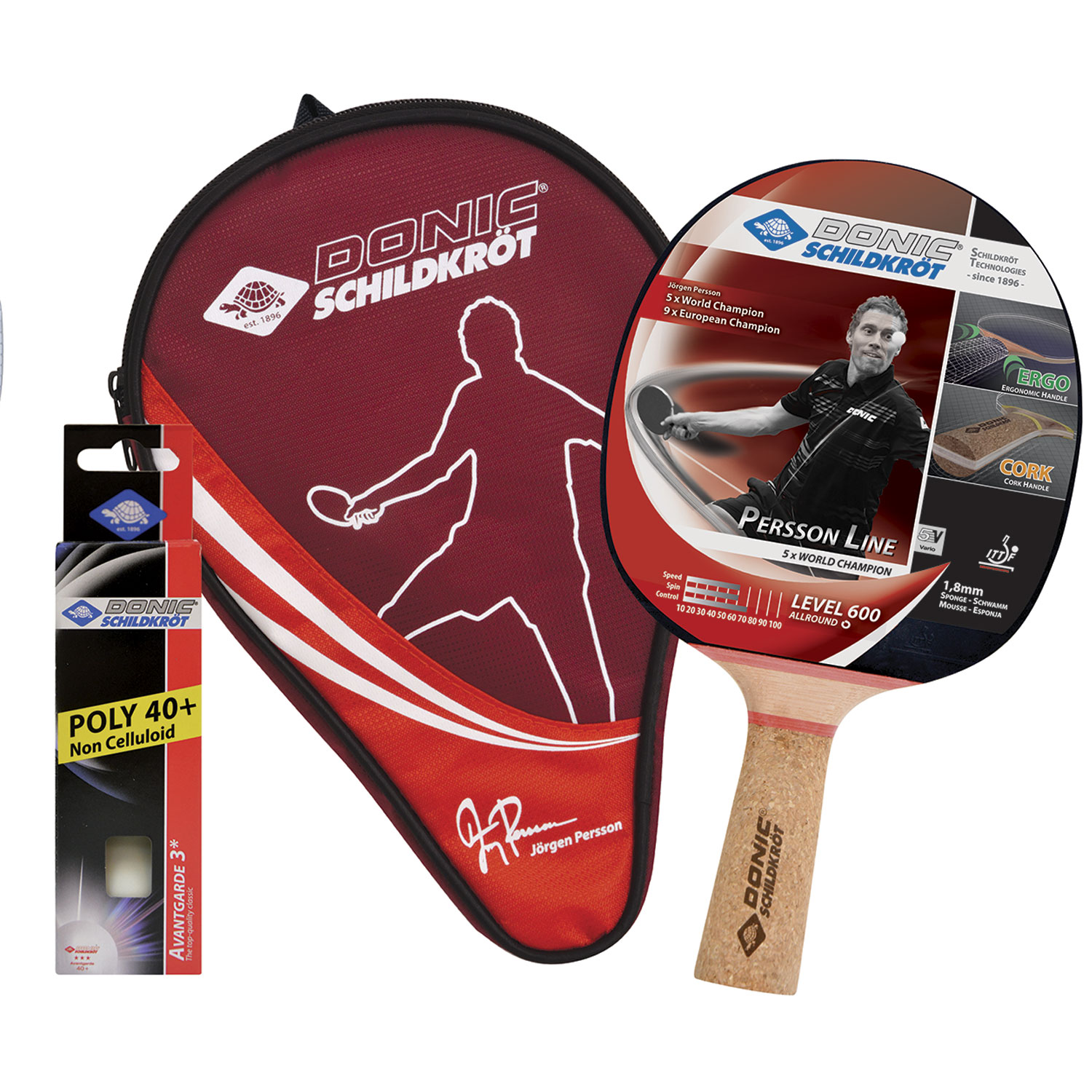 В комплекте ракетка  DONIC PERSSON 600 и 3 мячика ( белых) и чехол. Набор в упаковке - блистер.