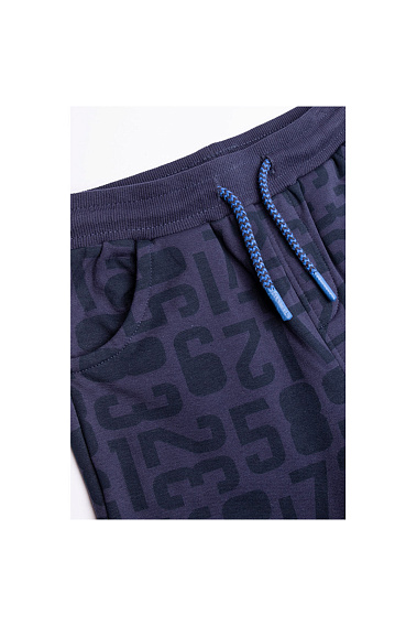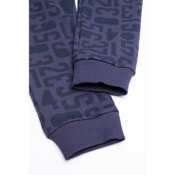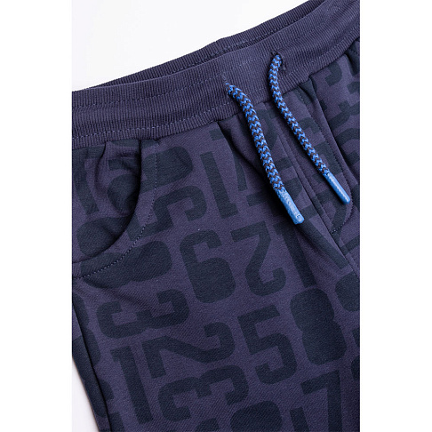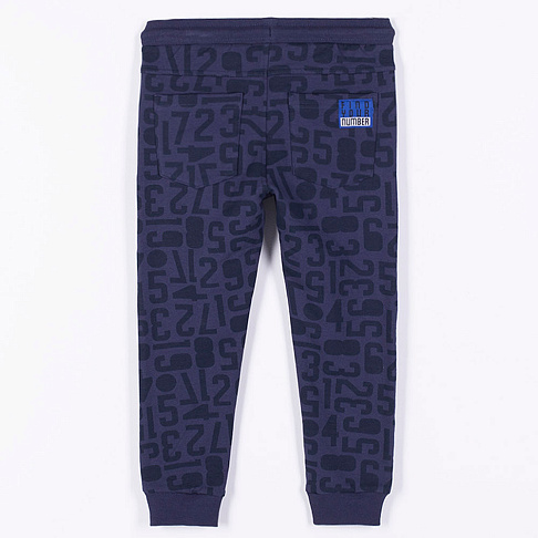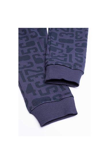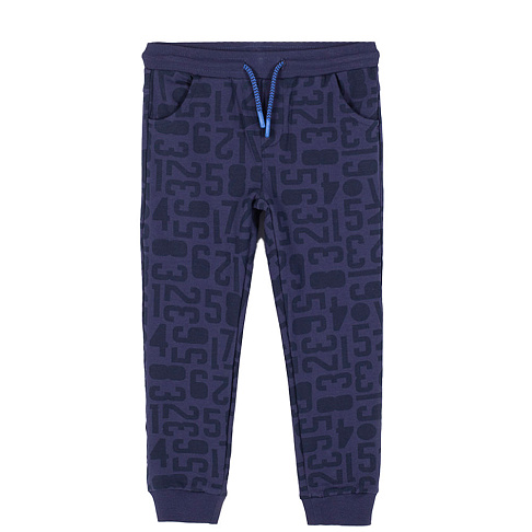 Стильные повседневные брюки, подходят для активных и спортивных игр. Украшены мелким принтом в виде цифр. Пояс регулируется с помощью завязок, низ штанин - на широкой резиночке для удобного прилегания. Брюки выполнены из натуральных неаллергенных тканей.