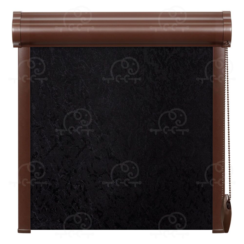 Рулонная штора будто бы созданная для создания интерьеров с графическим дизайном. Строгий геометрически выстроенный черный прямоугольник с изящной подвижной цепочкой сбоку в алюминиевом коробе, цвет которого вы можете выбрать или из основных, или заказать по собственному усмотрению – все это дает широкие возможности для создания стильного образа комнаты в стиле хай-тек или минимализм.