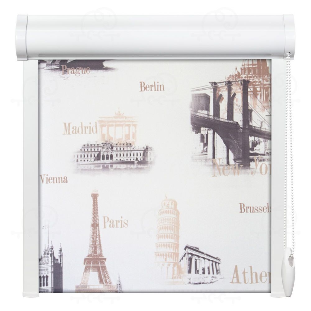 Рулонная штора «Глобол» Кремовый - это шикарная возможность создать оригинальное, но при этом функциональное оформление окна в стилистике поп-арта. По ней буквально можно изучать географию, ведь изображения на белом полотне – это самые знаменитые достопримечательности, ставшие символами европейских столиц. Верный выбор для тех, кто ищет чего-то креативного, необычного, и хочет создать действительно нетривиальный акцент.
