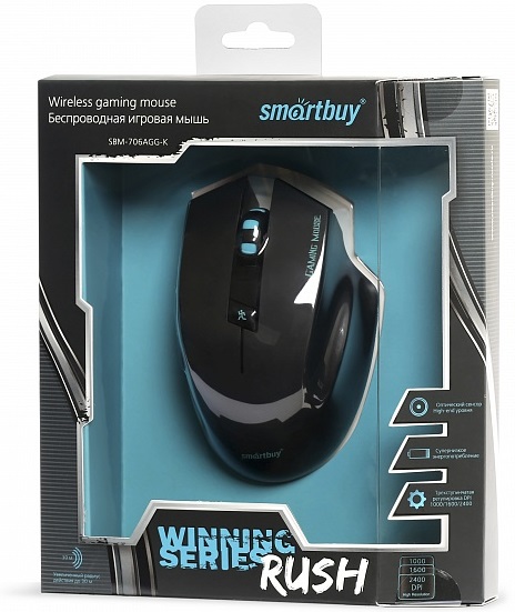 Беспроводная, радиоканал, оптическая, 2400 dpi, количество кнопок - 6, цвет: черный.
