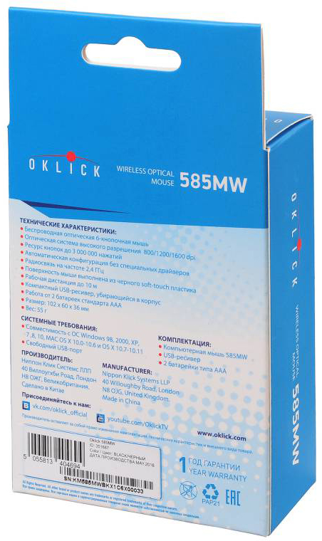 Компьютерная мышь Oklick 585MW