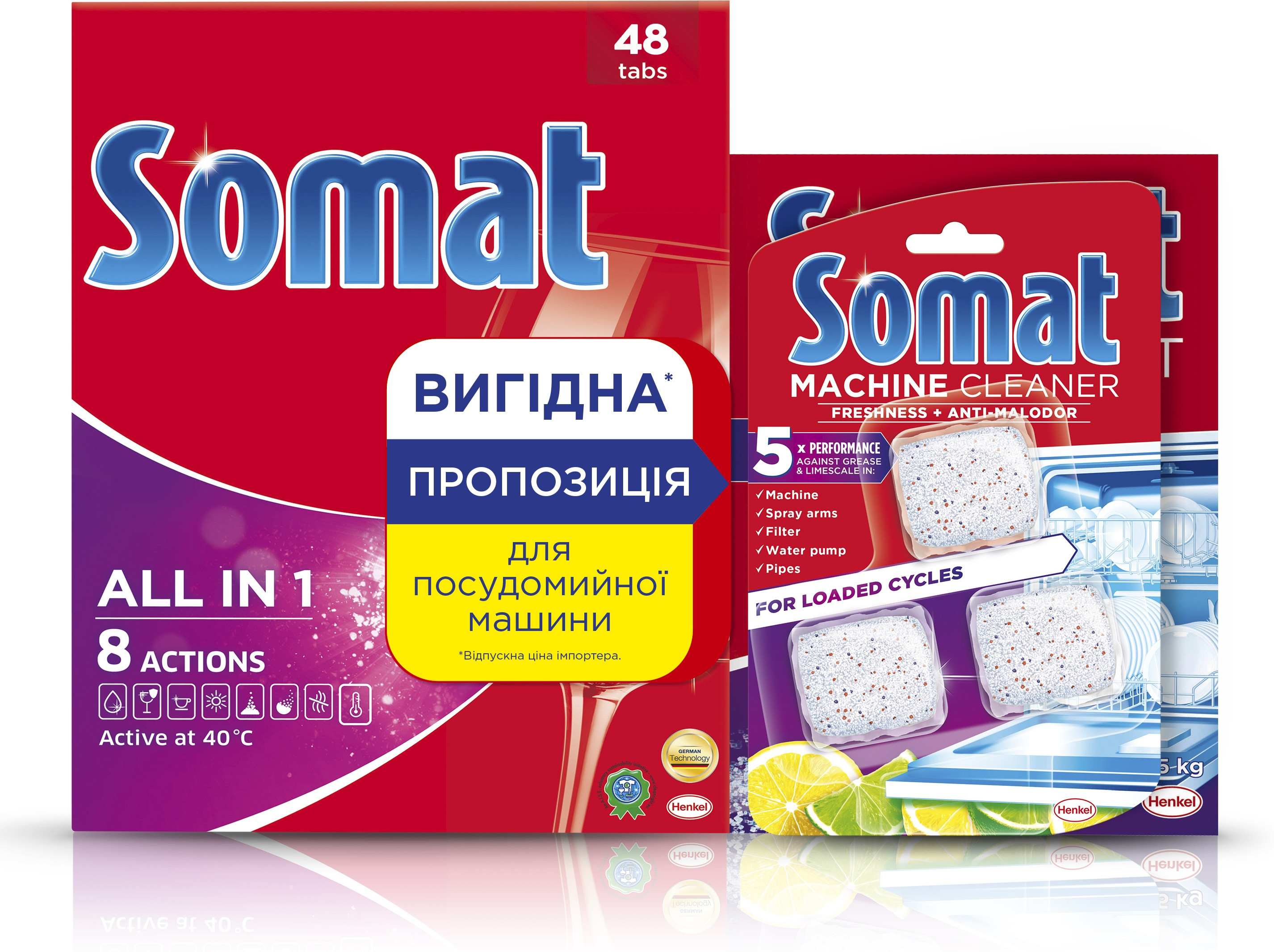 Порошок для посудомоек SOMAT Набор для ПММ All in one 48 шт.