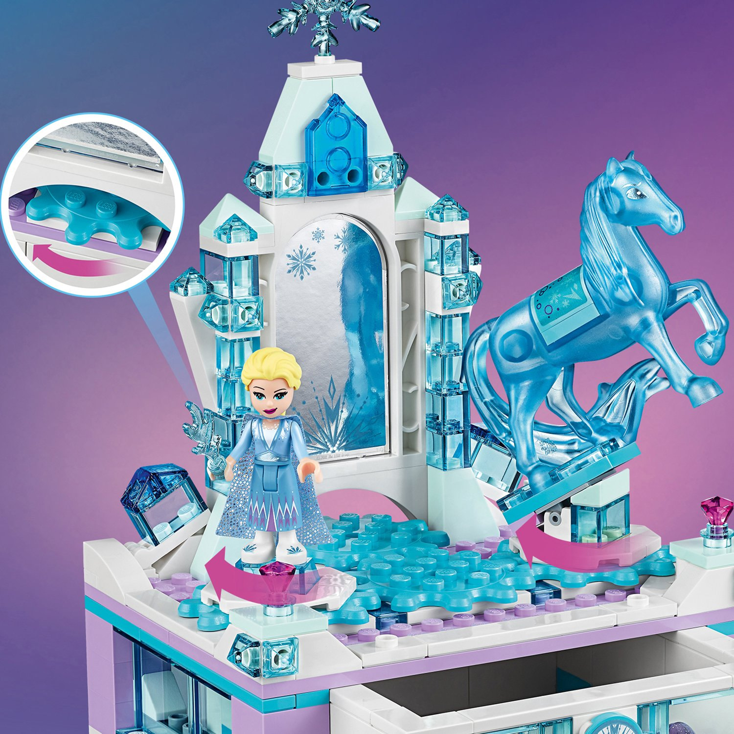 Поворотный механизм приводит в движение Эльзу и духа воды, завораживая своей красотой.